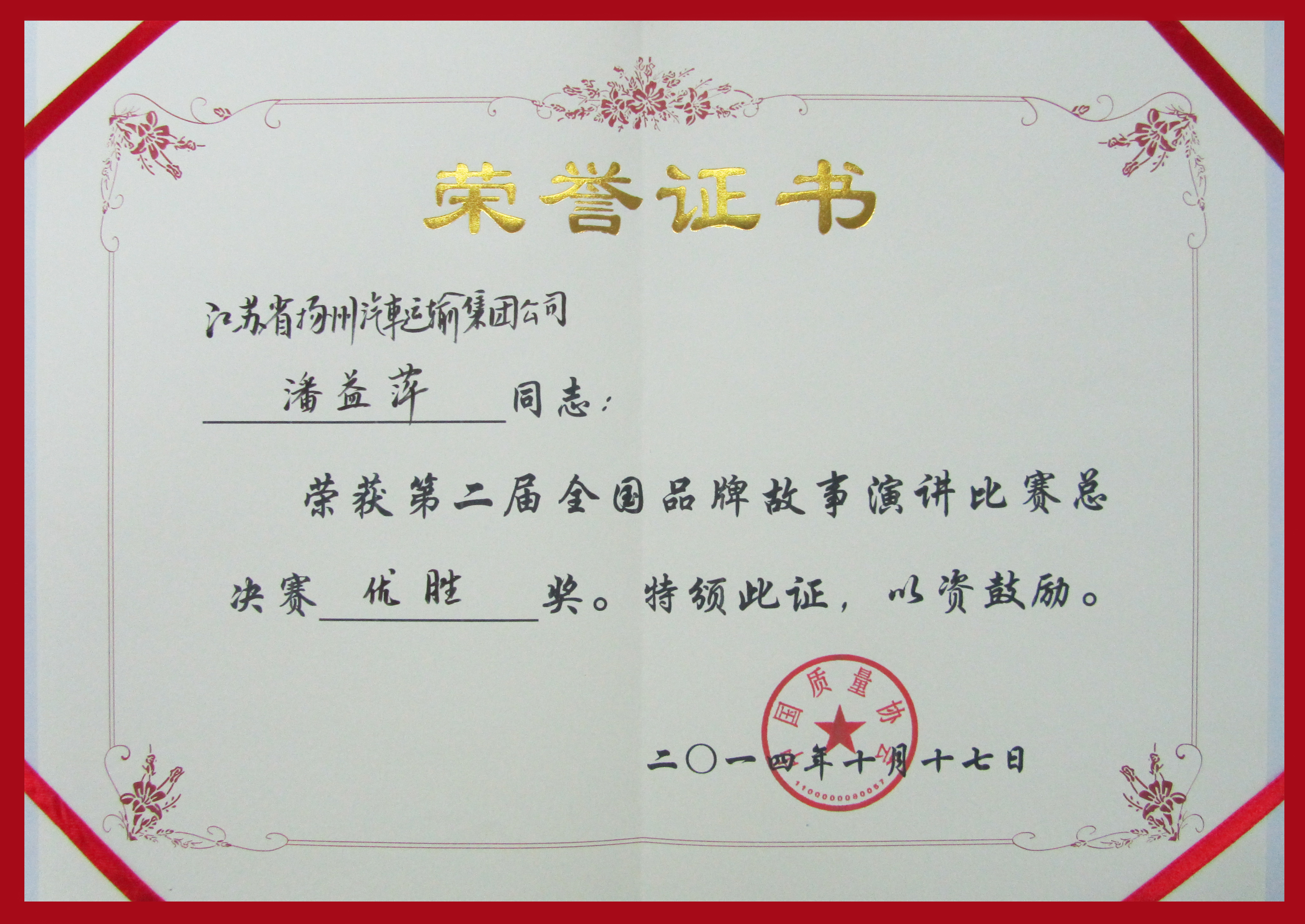 我司榮獲第二屆全國品牌故事演講比賽優(yōu)勝獎(jiǎng)