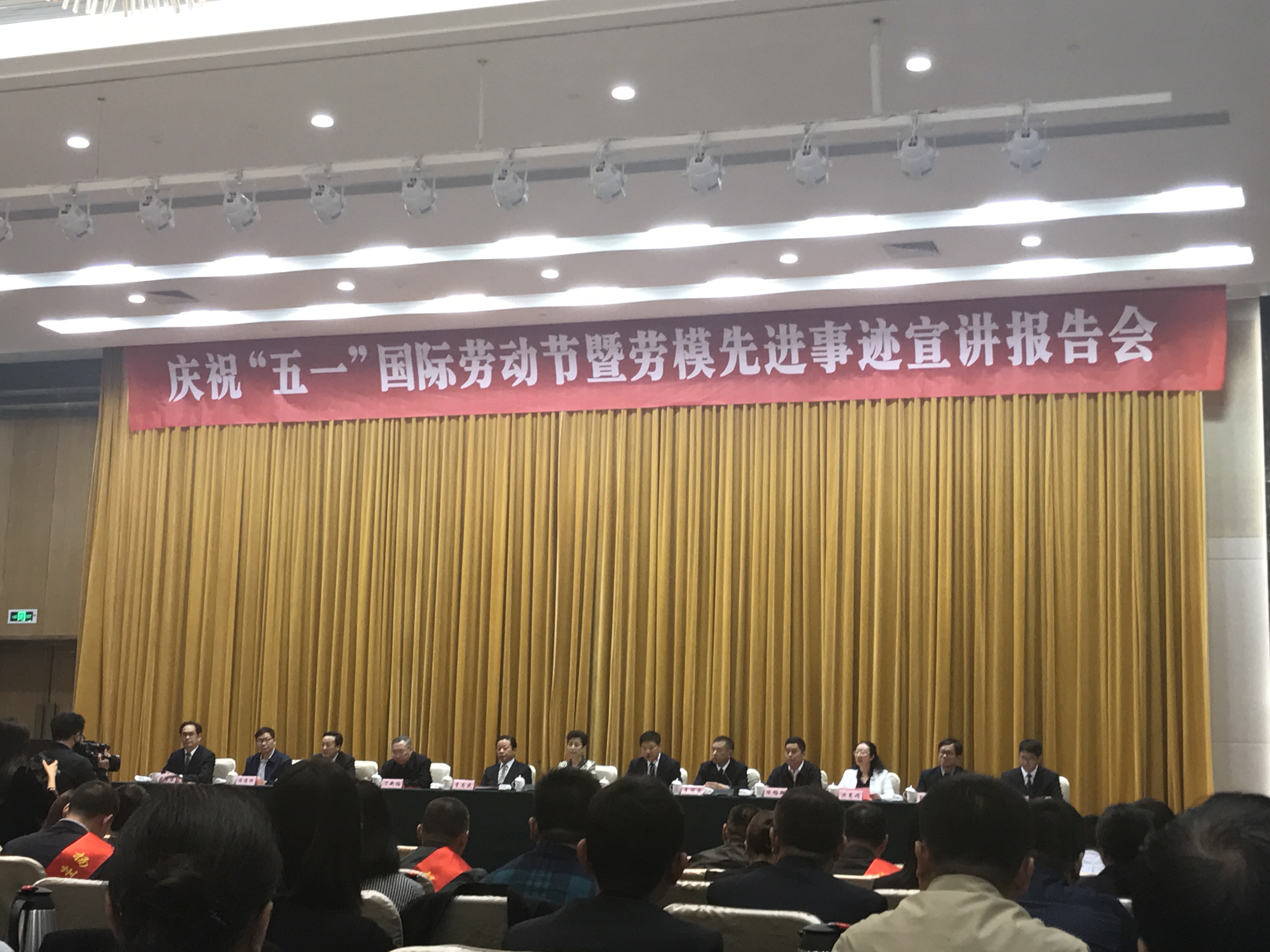 4月27日下午,市委、市政府在揚(yáng)州明月湖酒店三樓會(huì)議廳舉行慶祝“五一”國際勞動(dòng)節(jié)暨勞模先進(jìn)事跡宣講報(bào)告會(huì),揚(yáng)州各縣(市、區(qū))總工會(huì)、功能區(qū)工會(huì)和市直各產(chǎn)業(yè)工會(huì)的工會(huì)主席,受表彰的2018年全國、省、市五一勞動(dòng)獎(jiǎng)?wù)潞凸と讼蠕h號獲得者代表及職工代表近300人參加會(huì)議。會(huì)上,揚(yáng)汽集團(tuán)修理廠職工劉東、汽車站服務(wù)班分別獲頒“揚(yáng)州市五一勞動(dòng)獎(jiǎng)?wù)?rdquo;、“揚(yáng)州市工人先鋒號”榮譽(yù)稱號。