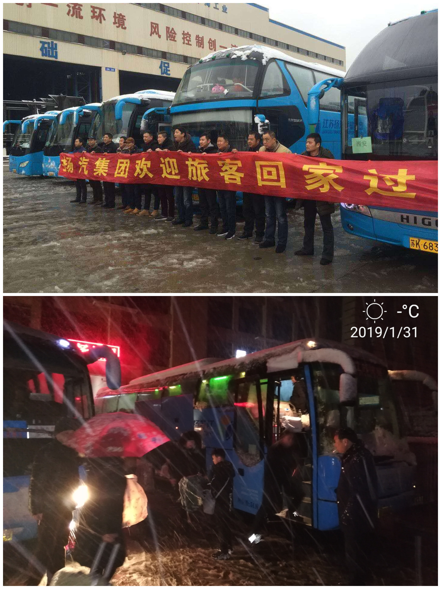 另外當(dāng)天早晨6點不到,在紛飛的雪花中,揚州杭集晨笑刷業(yè)、江都安凱汽車制造、中海公司的260余名農(nóng)民工朋友也坐上了東站的“返鄉(xiāng)直通車”,歡歡喜喜的回家過年。