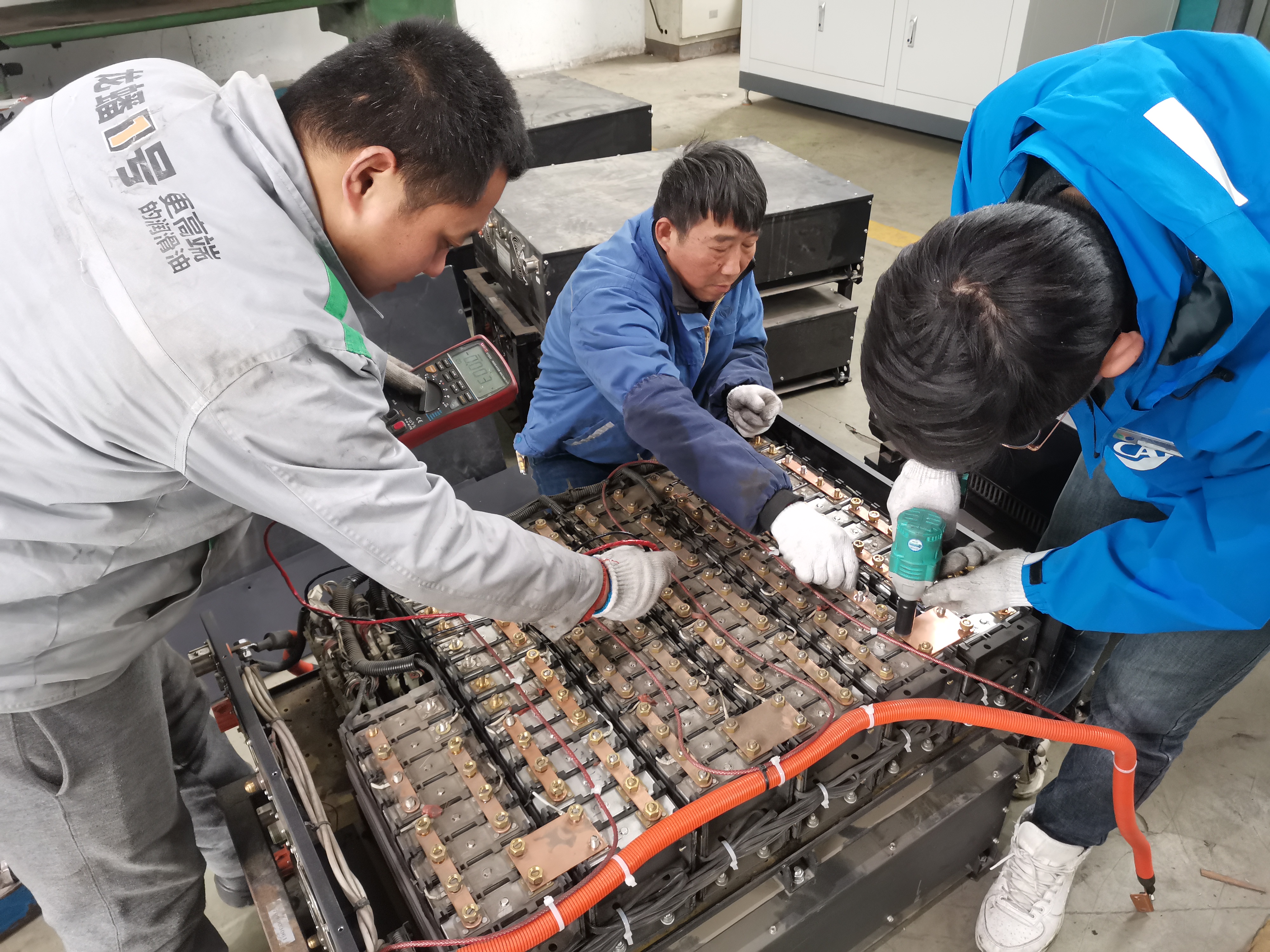整改期間,修理廠高度重視,積極推進(jìn)隊(duì)伍建設(shè),組織技術(shù)中心六名骨干人員,采用兩人一組,“老手”帶“新手”的模式,分批前往亞星裝配車間。后期,雙方為加快推進(jìn)項(xiàng)目整改進(jìn)度,亞星直接將這批動(dòng)力電池發(fā)運(yùn)到修理廠,修理廠以熟練的箱體拆解、單體檢測(cè)、二次篩選、補(bǔ)電維護(hù)等系列流程進(jìn)行維護(hù)。