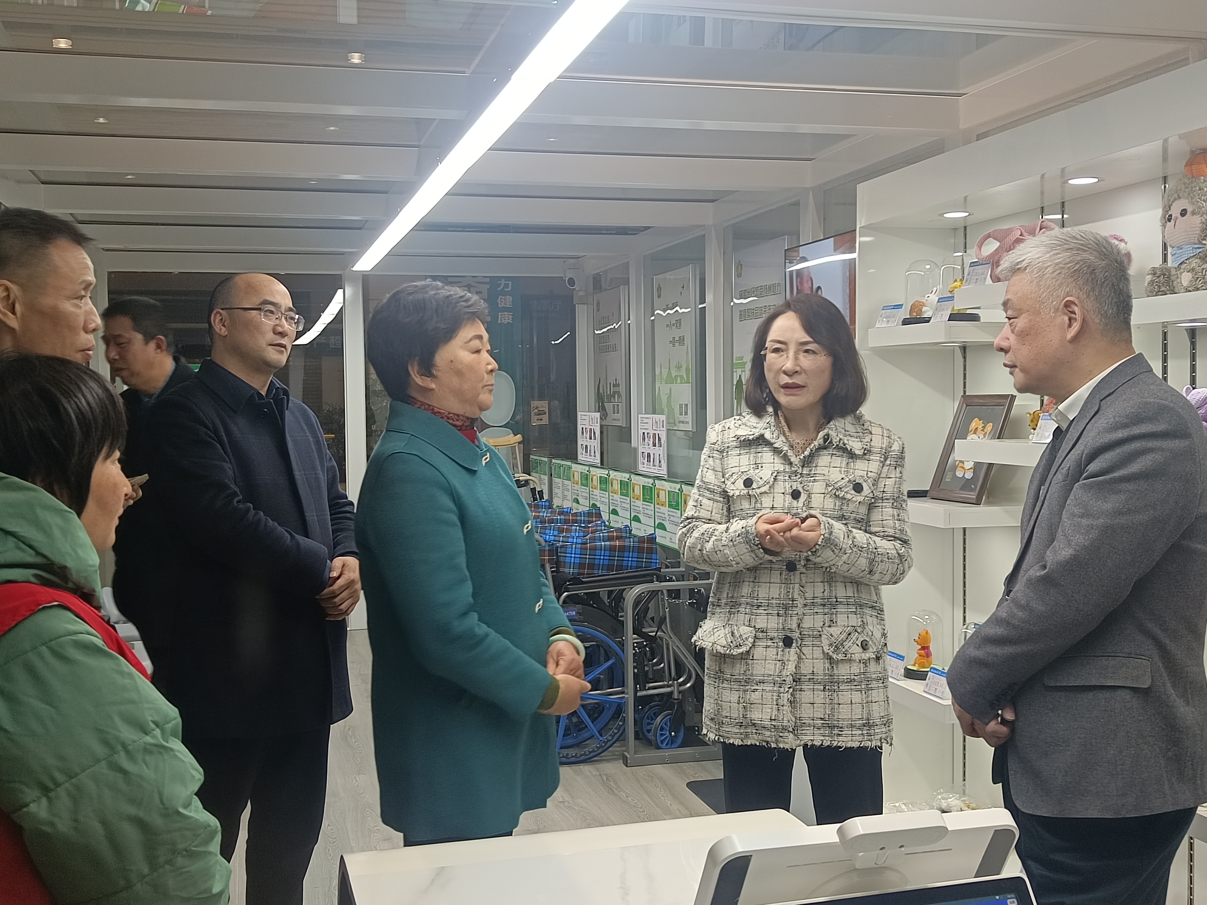 杜曉鎮(zhèn)一行實(shí)地查看了無障礙服務(wù)驛站的建設(shè)情況,揚(yáng)汽集團(tuán)相關(guān)負(fù)責(zé)人就愛心“驛站”的相關(guān)基礎(chǔ)設(shè)施以及為有需求的殘疾人、老年人出行提供輪椅、手杖等器具租借服務(wù)情況作了詳細(xì)介紹。