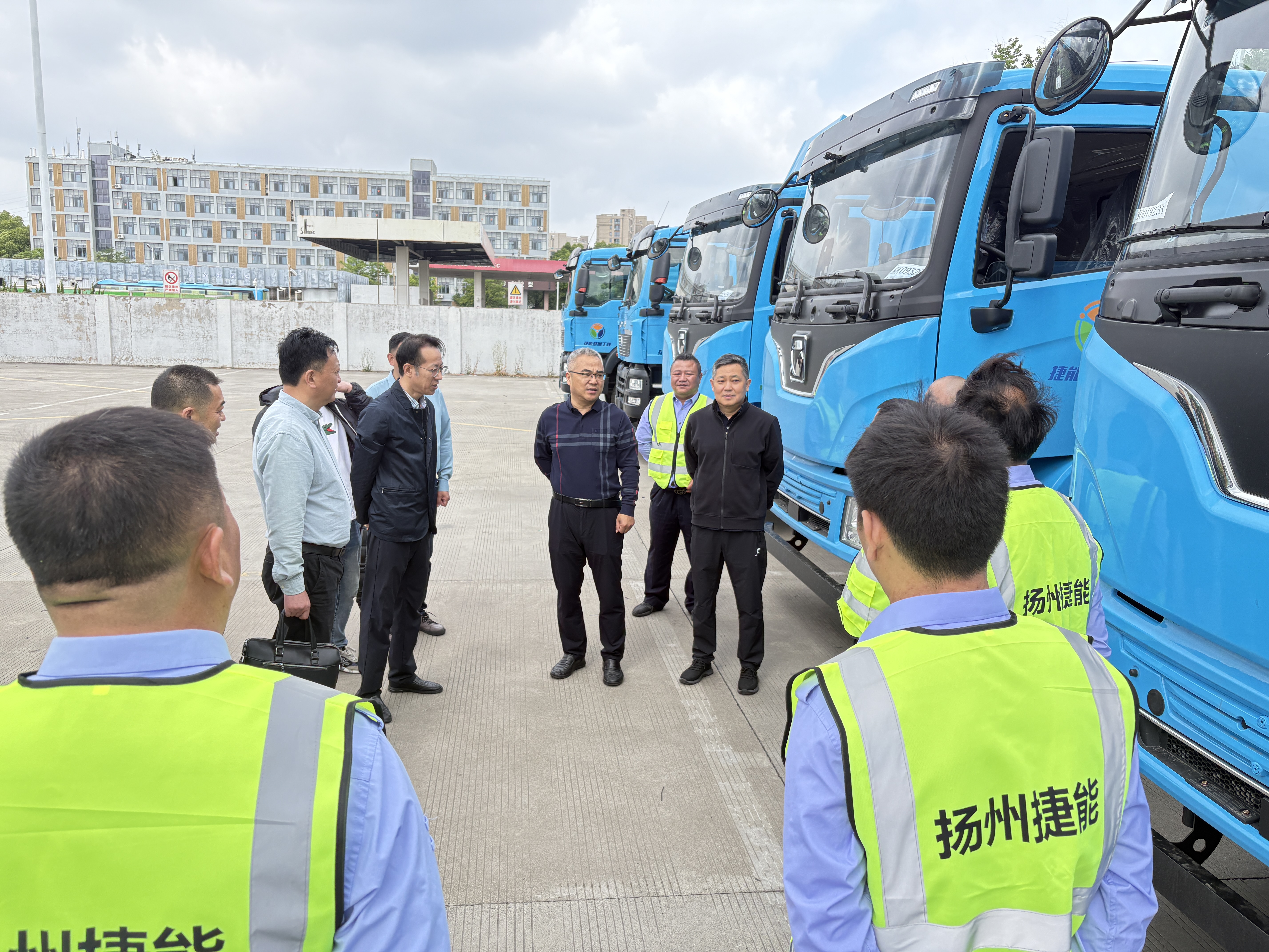 曹遠志一行聽取了揚州捷能基礎工程有限公司關于新車購置、隊伍建設等工作進展情況的匯報,詳細了解新能源車輛的技術性能,操作流程,并與一線駕駛員親切交流,提出相關工作要求。